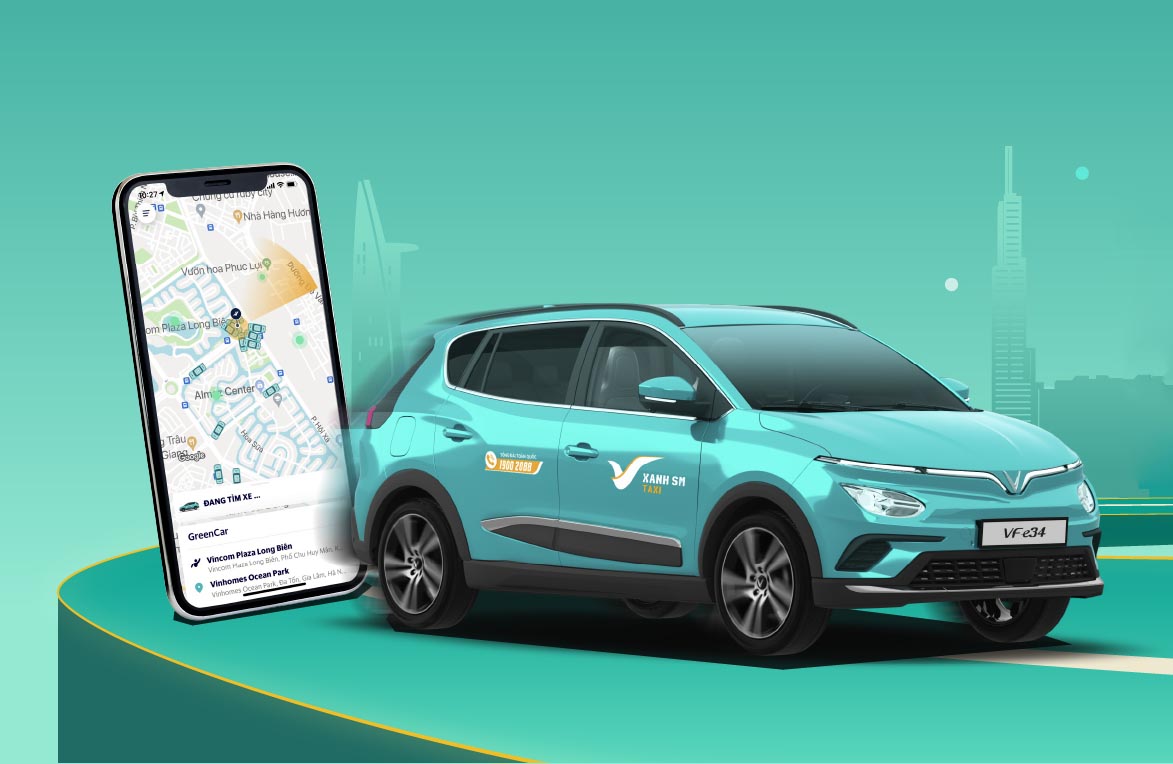In Vietnam, you can book Grab, bee, or Taxi xanh SM (electric car)