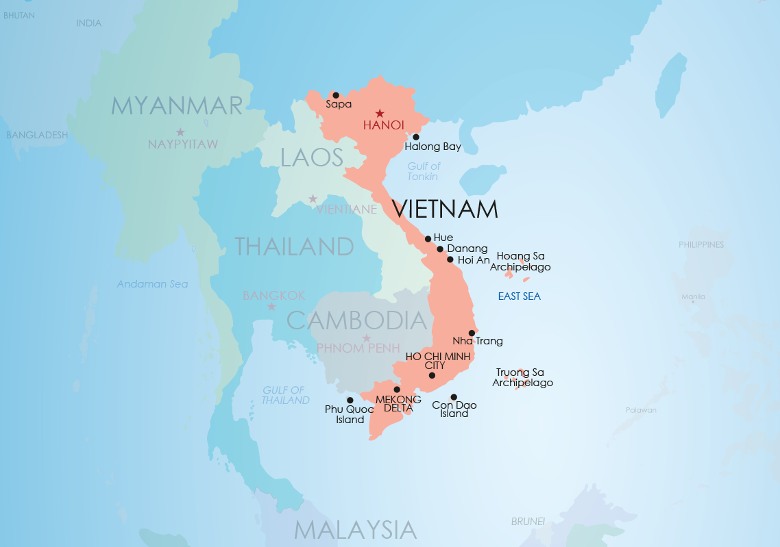 Characterised by a long s-shaped geography running from the northern frontier to the southern Mekong Delta, Vietnam's incredible diversity of offerings is a credit to its position along the Indochina Peninsula with the longest and most abundantly beautiful coastlines, facing both the Eastern Sea and the Gulf of Thailand.Population